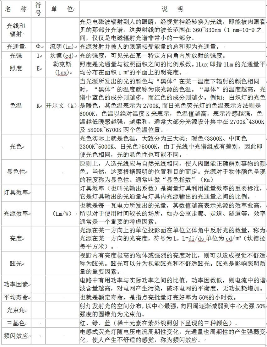 照明基礎(chǔ)知識(shí)參考